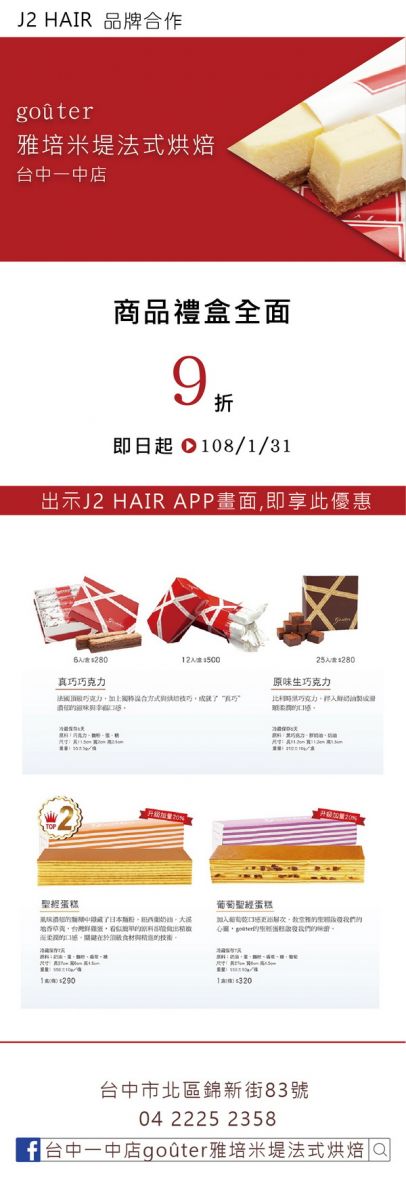 J2 HAIR 品牌合作 X 台中一中店雅培米堤法式烘焙